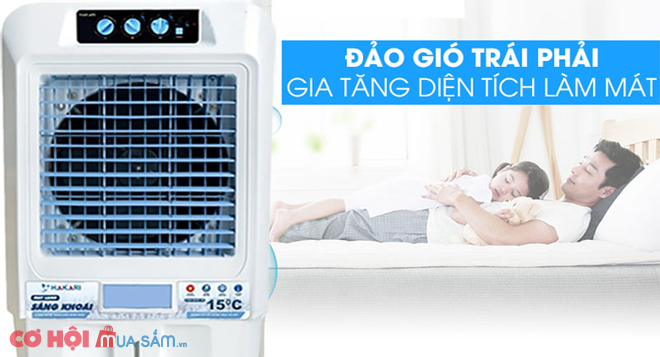 Lưu lượng gió 13.000 m3/giờ, dung tích 100 lít, 3 tốc độ gió, lưới lọc bụi 3 mặt, máy làm mát từ hơi nước nhưng không phun sương Hakari HK-90 tiện dụng trong cả không gian mở và kín.