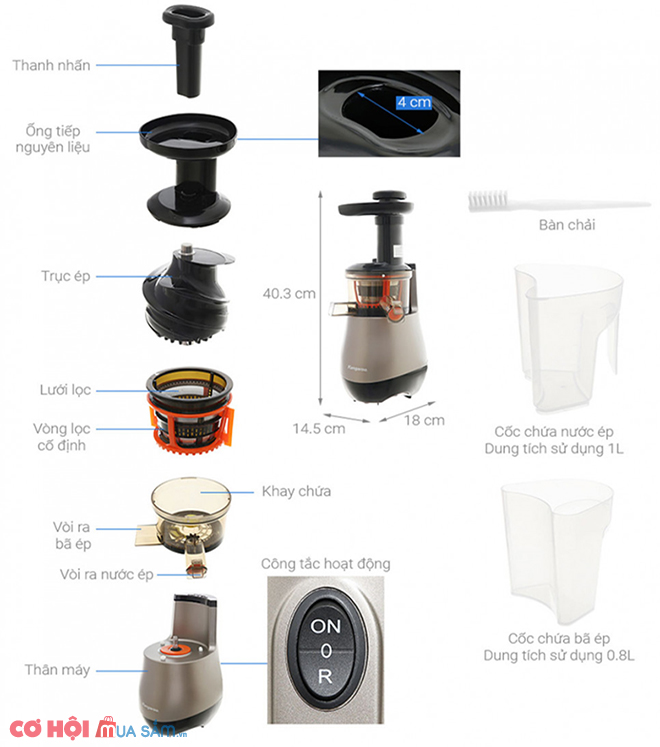 - Công nghệ ép chậm bảo toàn 80% giá trị dinh dưỡng rau củ quả khi ép.