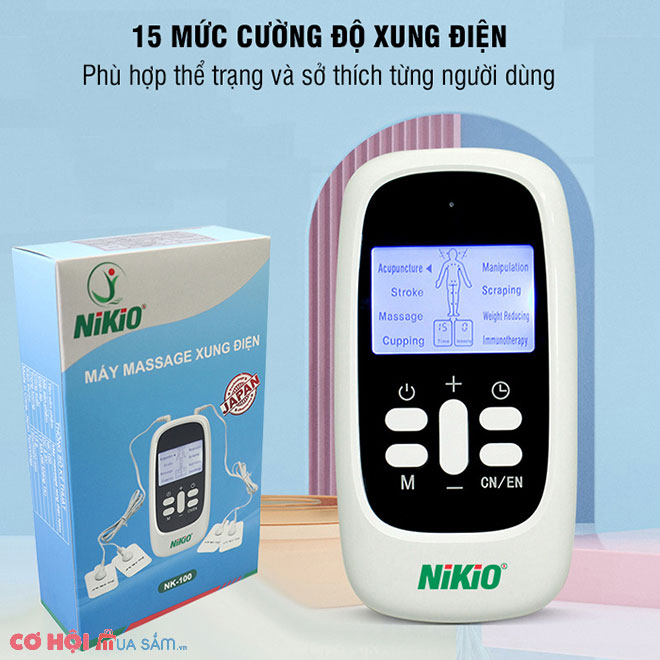 Máy massage xung điện Nikio NK-100 là thiết bị hỗ trợ điều trị hữu ích các triệu chứng mệt mỏi, đau nhức cơ thể, tăng cường tuần hoàn máu... Máy sử dụng xung điện tần số thấp, truyền qua 4 miếng dán, tác động trực tiếp vào các cơ, làm chúng co giãn nhẹ nhàng, tạo ra cảm giác thư giãn tối đa. Dưới tác dụng của xung điện, các cơn đau mỏi cơ, đau nhức xương khớp được giảm nhanh tức thì. Xung điện sinh học tác động sâu vào các huyệt vị, giúp máu huyết lưu thông tốt hơn. Với 8 chế độ massage và 15 cường độ xung điện, máy có thể cải thiện sức khỏe hiệu quả cho mọi đối tượng người dùng. Chỉ cần massage thư giãn với máy massage xung điện Nikio NK-100, 15 phút mỗi ngày, các cơn đau nhức, ê ẩm sẽ được đẩy lùi ngay lập tức. Đây là một sản phẩm chăm sóc sức khỏe tuyệt vời mà bạn nên đầu tư cho mình và gia đình. Gọi ngay vào hotline 1900 2807, để được tư vấn thêm chi tiết.