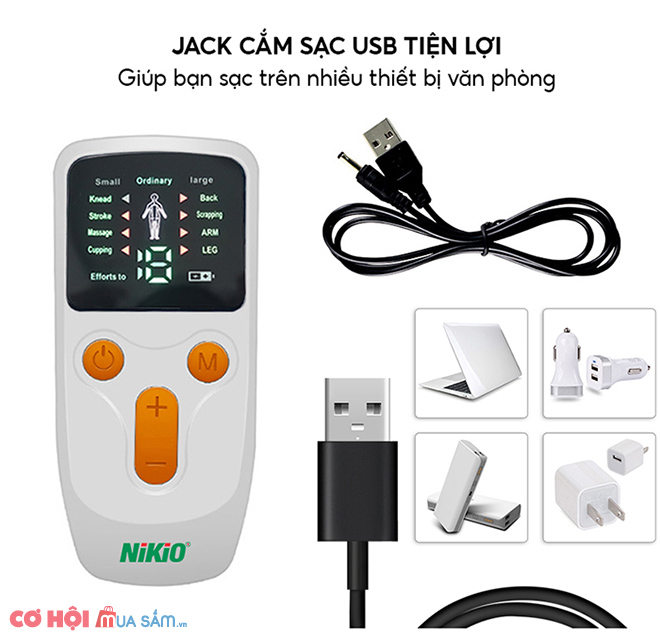 Máy massage xung điện 8 miếng dán trị liệu Nikio NK-101 - Pin sạc