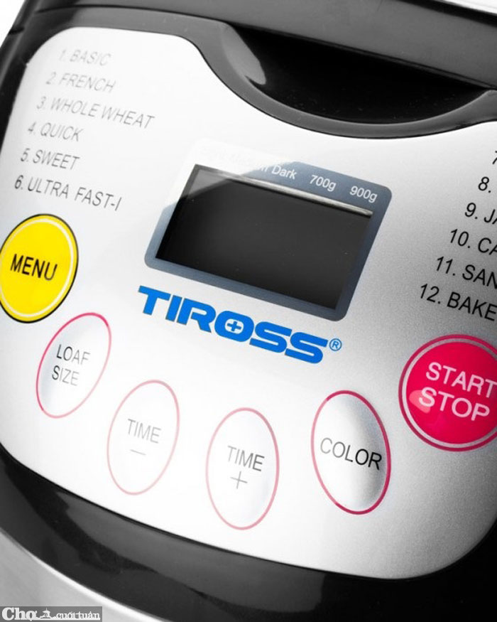Máy làm bánh Tiross TS821 có 12 chức năng làm bánh khác nhau: bánh mì cổ điển, bánh mì Pháp, bánh ngọt, làm bánh nhanh, làm bột, mứt, sandwich... đáp ứng sở thích đa dạng của người dùng. Máy có khả năng làm bánh có khối lượng từ 700 – 900g.