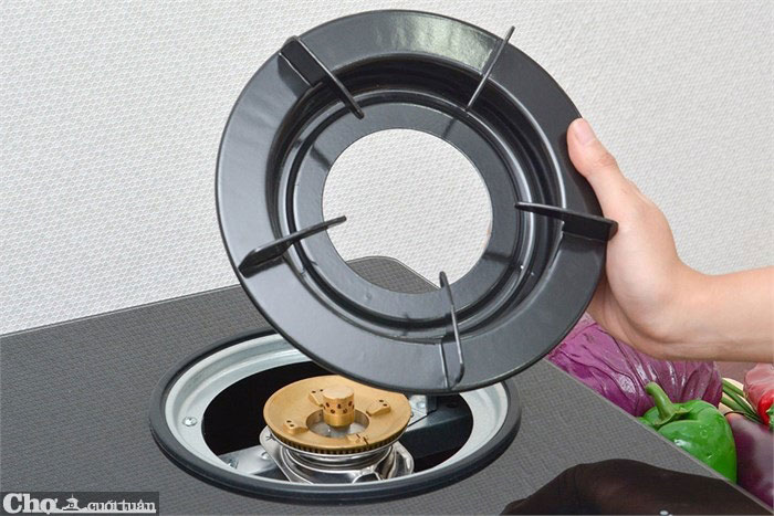 Kiềng bếp làm bằng kim loại được phủ men không gỉ, thiết kế tháo rời được nên cũng rất dễ lau chùi.