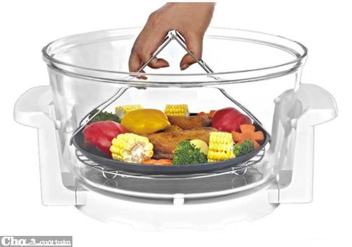 Lò nướng thủy tinh có thể điều chỉnh công suất tới 250W, hẹn giờ từ 0- 60 phút cho phép thực hiện các chức năng khác nhau như nướng thịt, nướng rau củ, nướng bánh, rã đông, hâm nóng, quay, rôti, chiên khô, rang, hun khói...