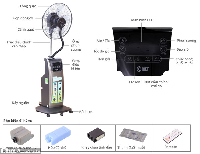 Thông số kỹ thuật quạt phun sương Comet CM8816