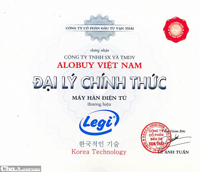 Thông tin chứng nhận đại lý ủy quyền - cửa hàng phân phối sản phẩm máy hàn điện tử Legi LG-150VRD-D chính hãng.