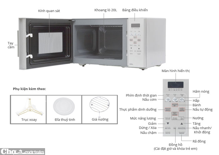 | Tính năng | Nướng, nấu, hâm, rã đông |