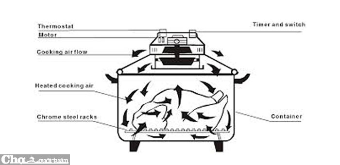 Lò nướng có chất liệu bằng thủy tinh dễ dàng quan sát quá trình chế biến thực phẩm, đồng thời còn có vành inox giúp tăng thêm dung tích cho nồi. Lò nướng là sự kết hợp tinh tế giữa 1 cái nồi tròn với 1 motor quạt trong nắp đậy làm cho hơi nóng di chuyển liên tục tạo luồng nhiệt đối lưu truyền nhiệt cực nhanh giúp thức ăn mau chín.