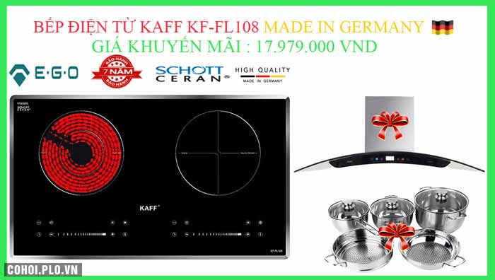 Tặng hút mùi + Bộ Nồi khi mua Bếp đôi hồng ngoại điện từ Kaff KF-FL108 nhập khẩu Đức.